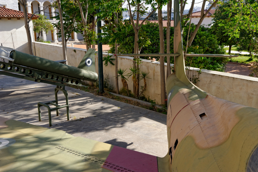 A l'extérieur du Musée de la Guerre sont exposés quelques appareils, ainsi que des armements navals utilisés par les forces armées grecques au cours du XXème siècle.